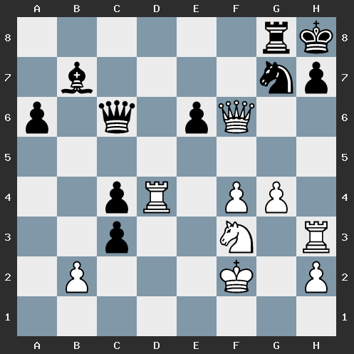 Ich hatte an Brett 3 meine erste Schwarz-Partie in dieser Saison und ließ mich auf eine Bauernraubvariante ein. Ich vernachlässigte die Entwicklung und versuchte stattdessen, einen zweiten Bauern zu gewinnen. Kurz danach drohte ich, im Angriffswirbel meines Gegners unterzugehen. In einer kritischen Stellung bot ich Damentausch an. Da gleichzeitig sein Läufer und sein wichtiger Zentrumsbauer hingen, tauschte er die Damen. Danach konnte ich mich vom Druck befreien, die Türme tauschen und in ein gewonnenes Endspiel mit Mehrbauern abwickeln, das ich sicher verwerten konnte. Hätte mein Gegner die Damen auf dem Brett behalten und stattdessen den Läufer geopfert, wäre ich verloren gewesen. Ein glücklicher Zittersieg.