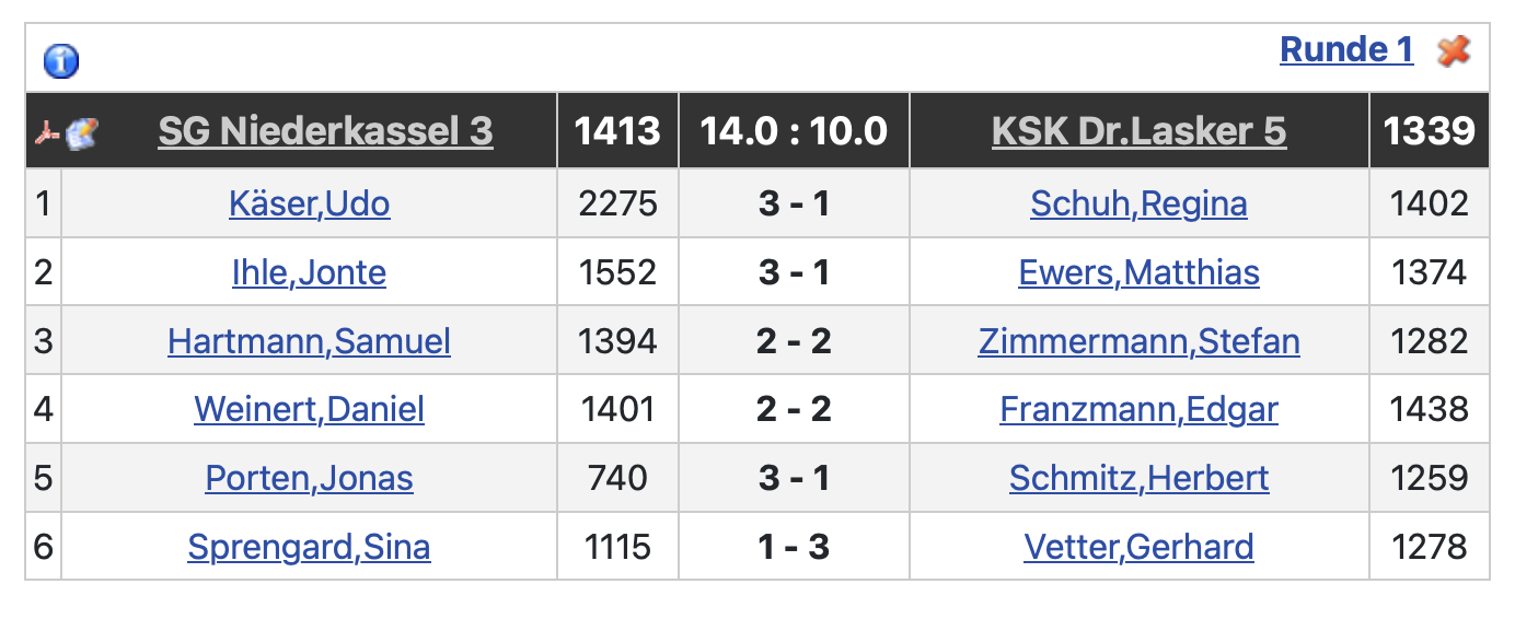 Der Start in die neue Saison sollte eigentlich mit einem munteren Grillen beginnen, doch gab es Terminprobleme, so dass es dann doch „nur“ ein Frühstück wurde – am Tag vor der Runde trafen sich fast alle Mitstreiter der dritten Mannschaft und bei Brötchen, Wurst, Käse und Eiern – okay, jemand hatte auch eine Nuss-Nougat-Creme mitgebracht – wurden Pläne geschmiedet, wie die Saison angegangen und der erste Mannschaftskampf, das Heimspiel gegen KSK Lasker V, gewonnen werden sollte. Diese Vorbereitung sollte sich auszahlen: Am nächsten Tag startete der der Wettkampf in munterer, freundliche Atmosphäre – doch Entschlossenheit war auf allen Gesichtern der Spieler aus Niederkassel abzulesen. Schon von Beginn an war Sorge in den Gegnern von Daniel und Jonas zu sehen, die als Neuzugänge in der dritten Mannschaft an Brett 4 und 5 ihr Debüt gaben – beide Gegner wussten sofort, dass mit ihren jungen Gegnern zu rechnen war. Und an den anderen Brettern sah es nicht anders aus: Purer Siegeswille schlug unseren Gegnern entgegen.